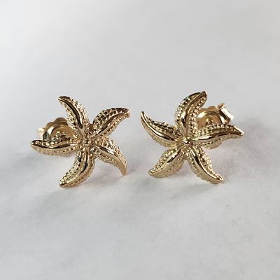 Detailed Starfish Earring studs 10k Yellow Gold