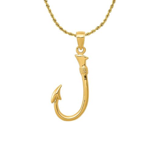 3D Fish Hook Pendant 14k Yellow Gold