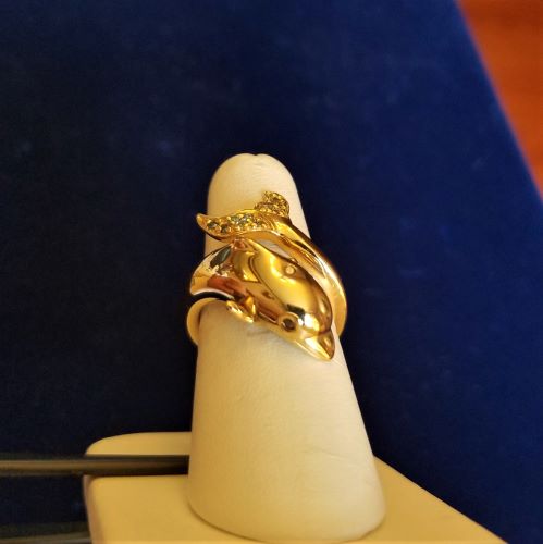 Dolphin Ring 14kt Yellow Gold Blue diamonds