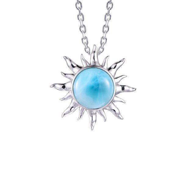 Sterling Silver Larimar Sun Pendent with 18″ Chain.